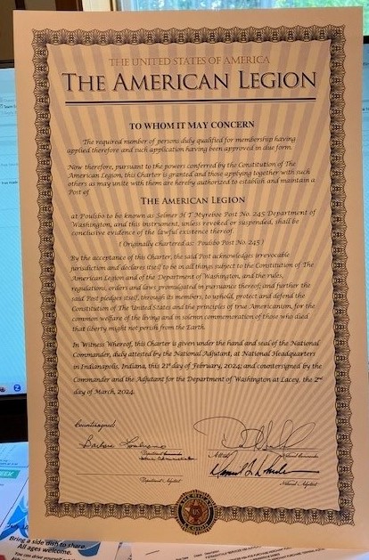 - Presentation of new Selmer H T Myreboe Post 245 Charter